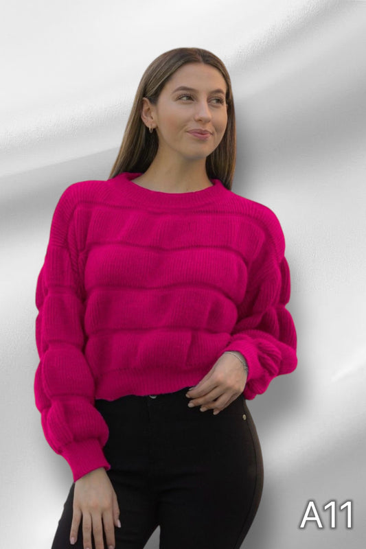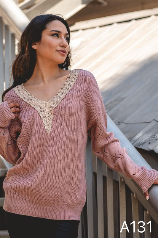 A131 - Sweater de Lana, Cuello Dorado y Mangas Calado