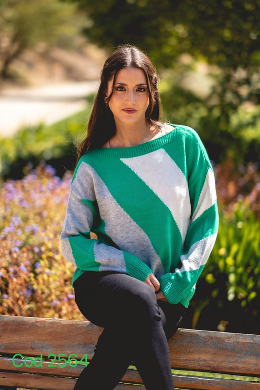 2563 - Sweater Cuello V Con Colores En Las Mangas