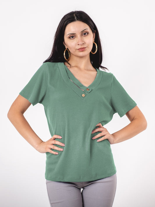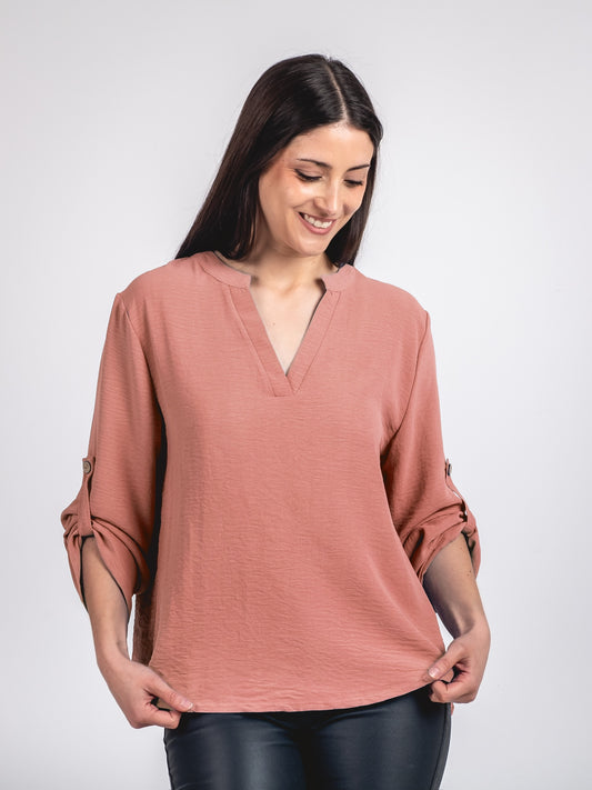 A327- Polera Manga Larga Ajustable 3/4 con Cuello Mao