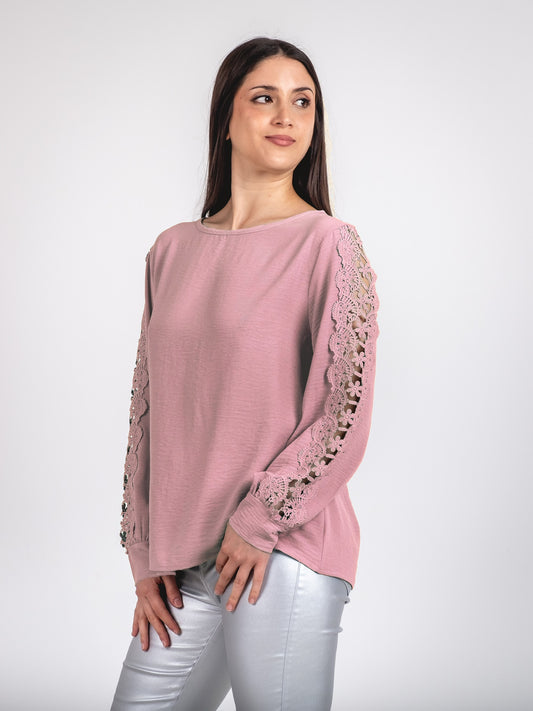 A297 - Polera Manga Larga con Detalle de Encaje