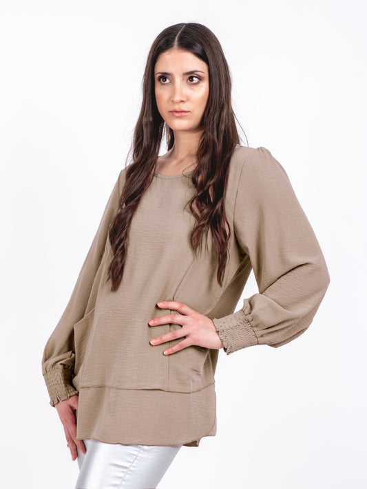 A283 - Polera Manga Larga Puño Elasticado Cuello Redondo y Bolsillos