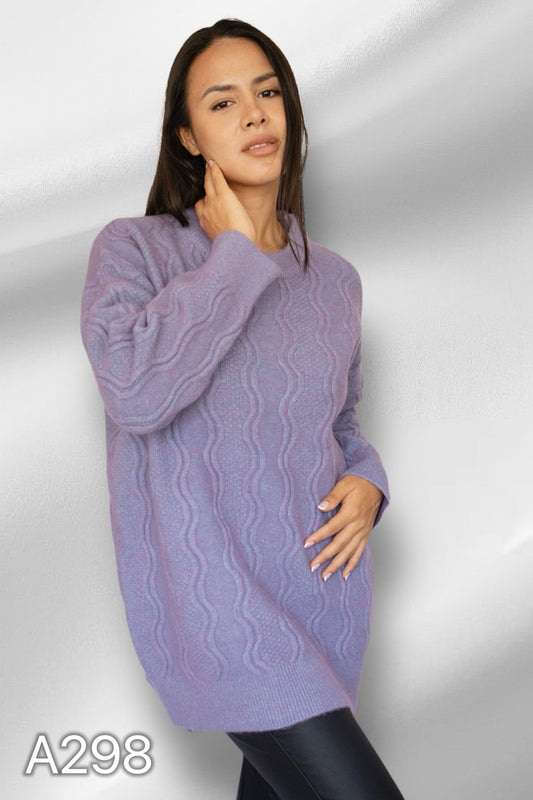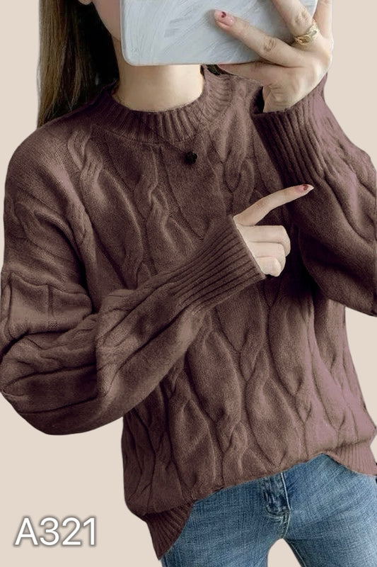 A278 - Sweater de Lana Cuello Redondo con Relieve: