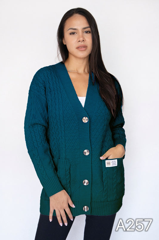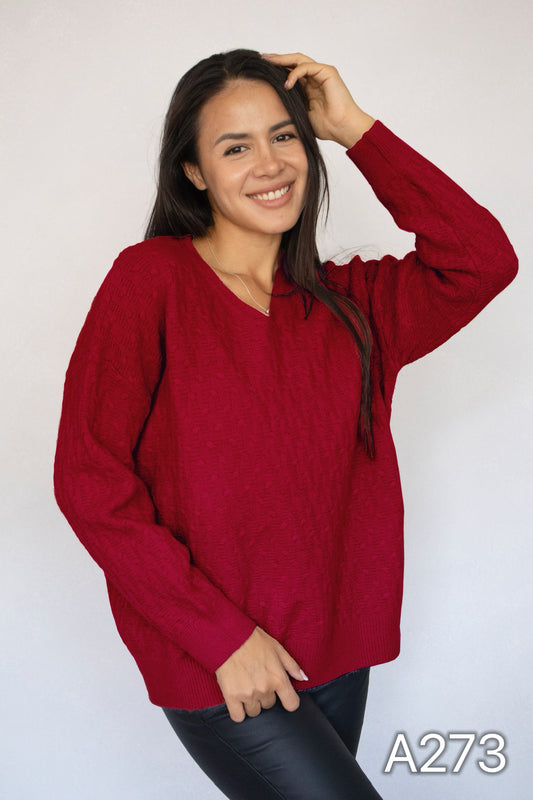 A64 - Sweater Cuello Bote Tricolor con Calado en el Cuello