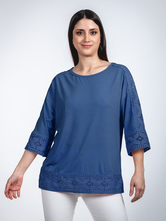 A329- Blusa de Manga Larga Ajustable a 3/4, con Cuello Redondo