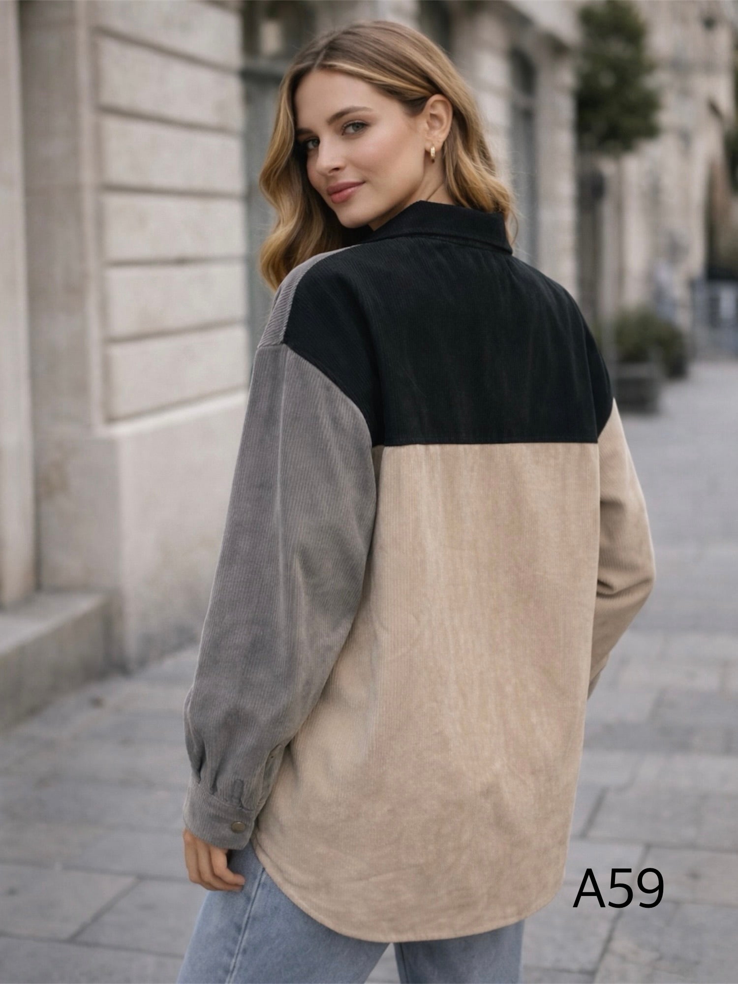 A59 - Camisa Cotelé Manga Larga Mujer Tricolor